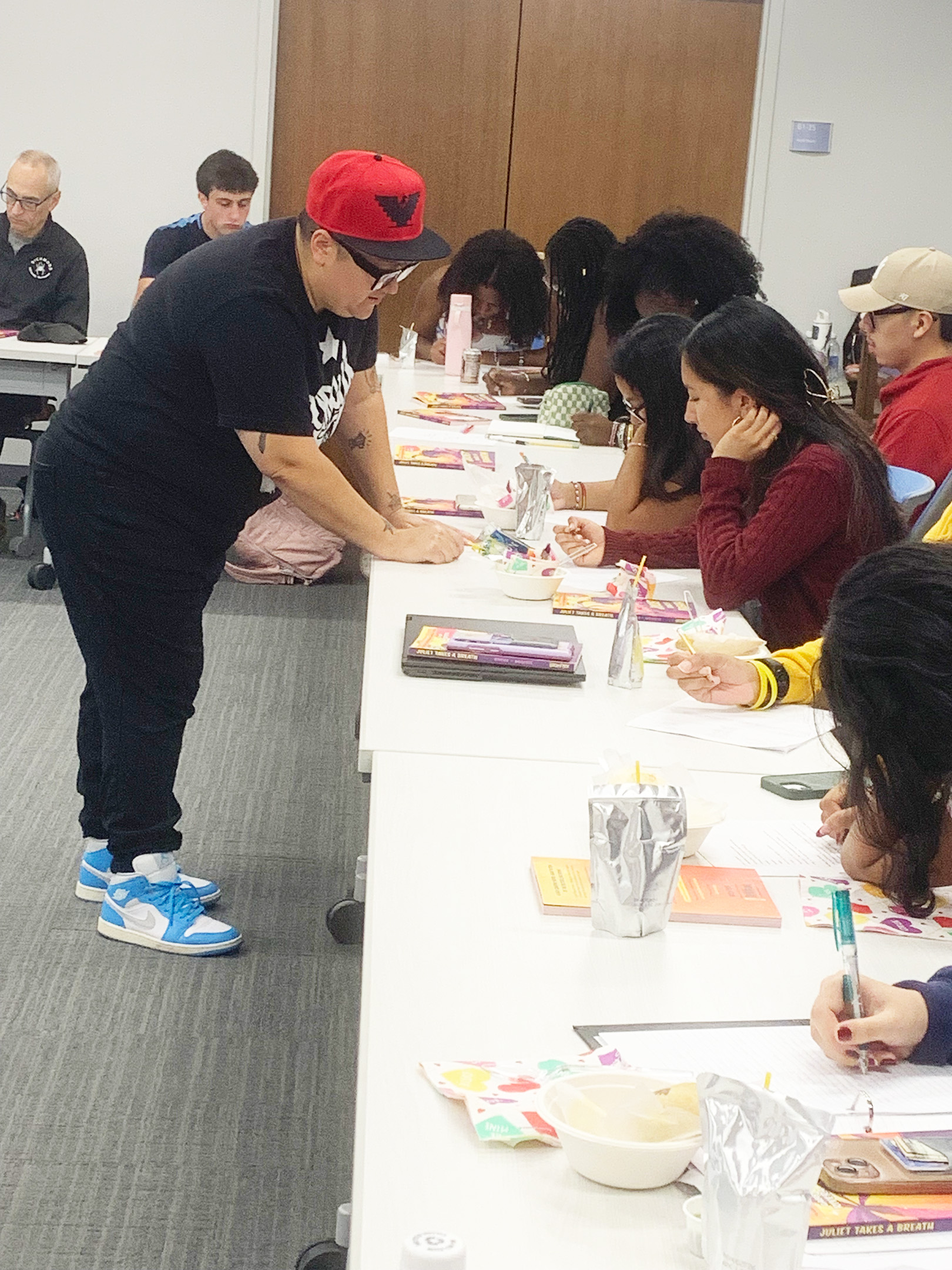 During a recent interactive workshop at Boatwright Library, over a dozen students put pen to paper as Gabby Rivera guided them through the process of inventing their own characters in a Superhero Creation Lab. Writing about superheroes provided “a place to grapple with justice and injustice,” she said.