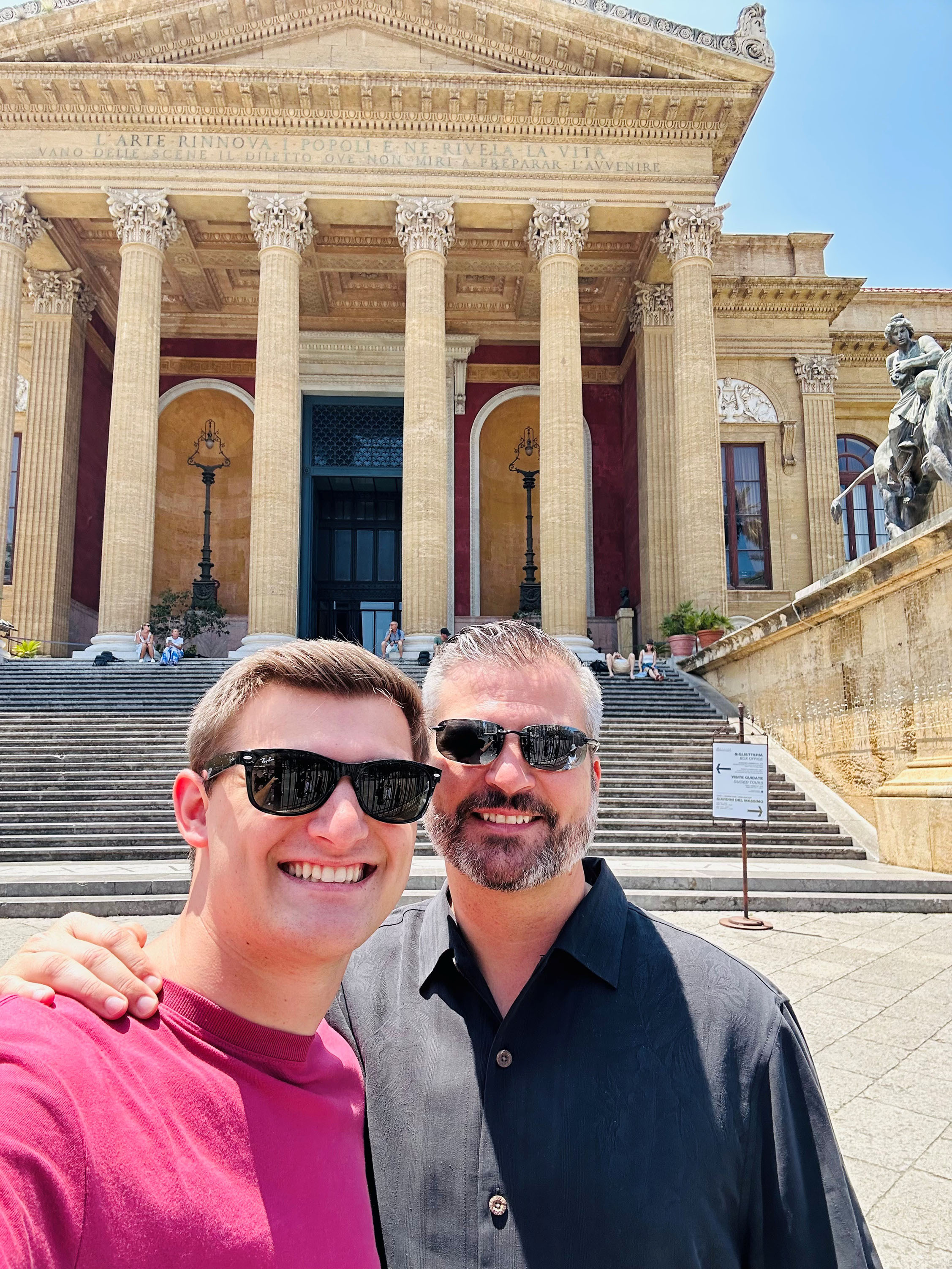 Drew Borchert with his father, Tim, in Sicily this summer.