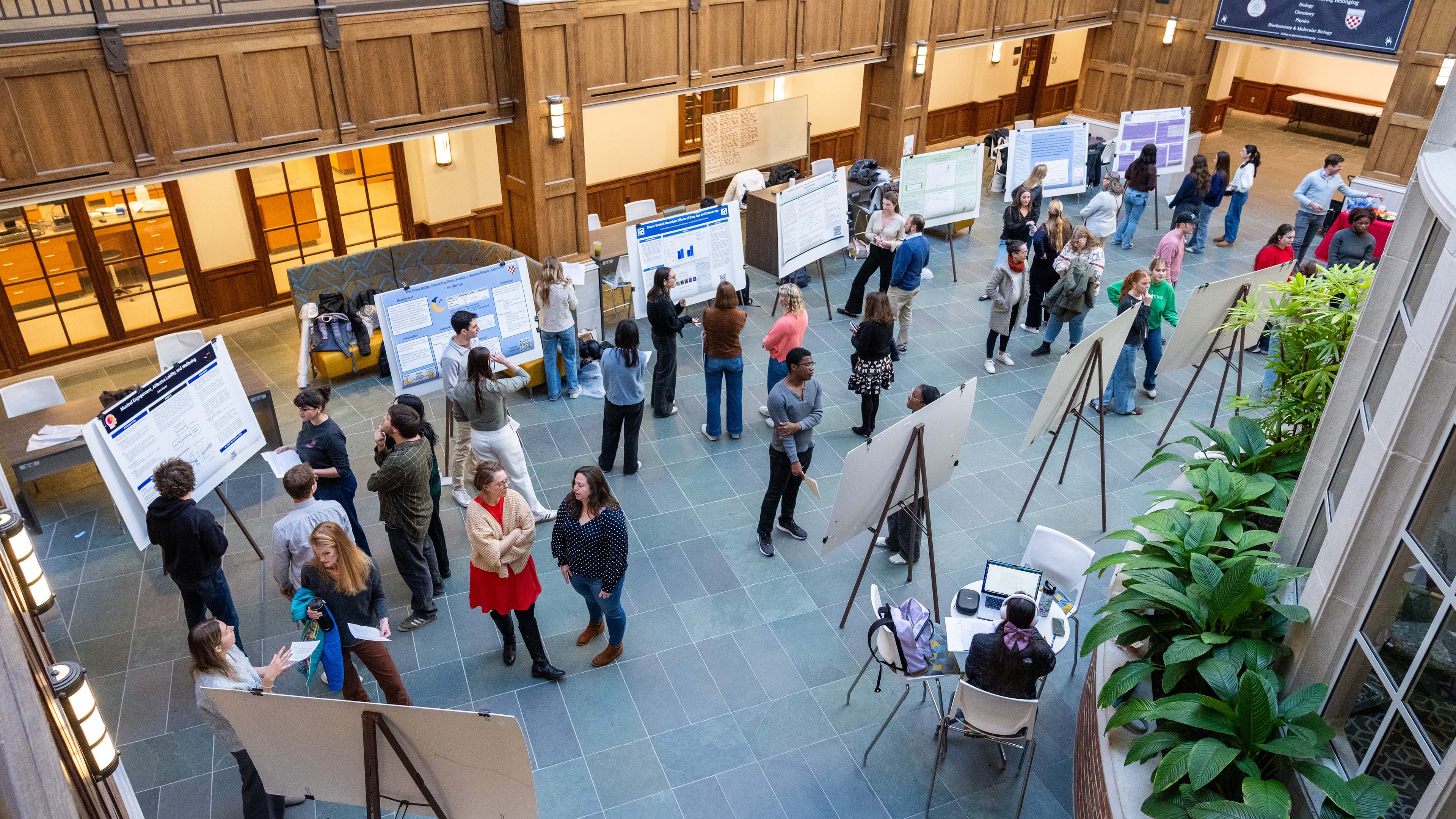 “Today, we are celebrating the work of 24 outstanding undergraduate researchers,” said a beaming Lundberg at the event, held in the Gottwald Atrium. “It has taken 15 weeks to get from the very seed of their ideas to the posters that you see on the boards and the papers waiting behind those QR codes.”