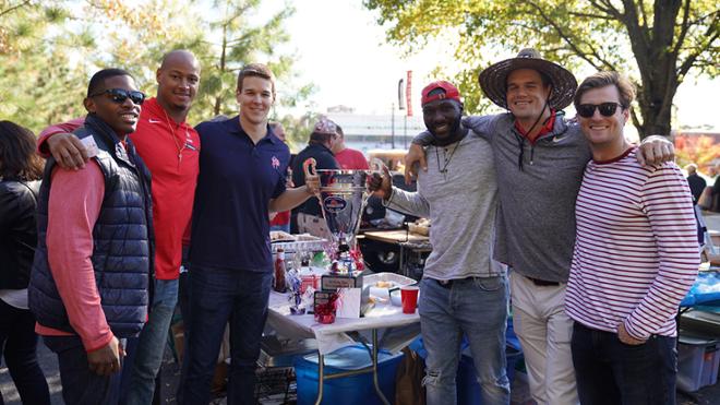 Kerry Wynn, second from left, celebrated Homecoming with fellow football alums.